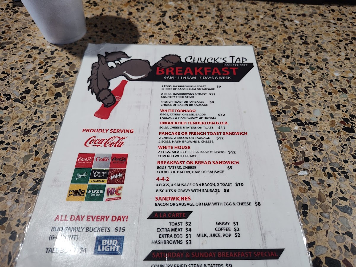 Welcome to Chuck's Tap, a cozy gem nestled in downtown Davenport at 1731 W 6th St. This unique dive bar has cultivated a warm, welcoming atmosphere perfect for gathering with friends or enjoying a leisurely breakfast. Patrons rave about the enticing menu, featuring hearty comfort foods like the highly praised open-faced roast beef, affectionately known as Hot Beef.